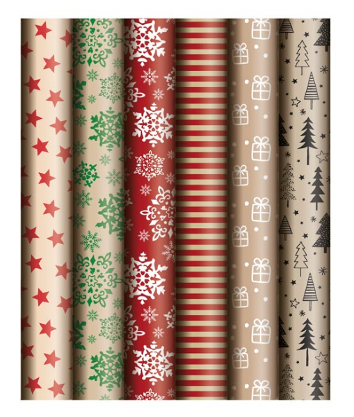 Balicí papír - vánoční role - 6 různých vzorů - U vánočního dárku je velmi důležitý obsah, ale i to, aby byl u stromečku krásně zabalený. Pořiďte si u nás dárkový balicí papír s vánočním motivem. Nezapomeňte si koupit i pěknou stužku a jmenovky na dárek.Balení: 1 ksGramáž: 70 gMateriál: kraftový papírVelikost role: 500 x 700 mmMotiv: mix vánočních motivů - viz obrázekUvedená cena je za 1 ks. Dodáváme v mixu dle skladové zásoby.