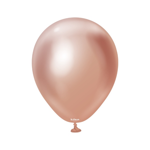 Profesionální dekoratérské chromové balonky v rose golg barvě, a odstínu Mirror Chrome Rose Gold, ve velikosti 13 cm/5". Tyto balonky značky Kalisan jsou kulaté, pevné a hodí se pro balónkové dekorace a profesionální použití. Nepraskají, jsou neprůhledné a nemají tmavé zakončení.