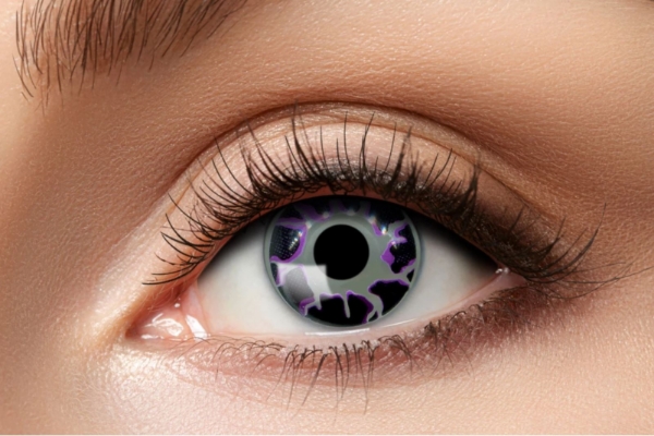 Sada 2 kusů barevných kontaktních čoček. Čočky jsou 3. měsíční, nedioptrické s vysoce krycím efektem fialové, černé a šedé barvy ve vzoru Light Sparkles. Využijete je jako doplněk na Halloween, karneval, čarodějnice nebo jakoukoliv tematickou party jako součást kostýmu.