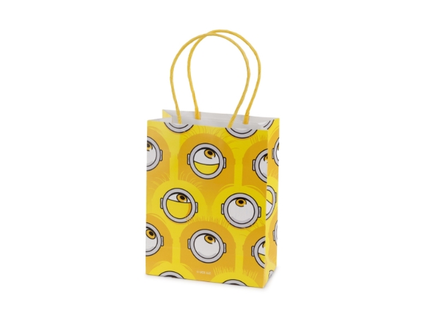 Tyto dárkové tašky Mimoni jsou ideální na bonbony, drobné hračky, sušenky nebo malé překvapení pro malé oslavence. Díky pevným papírovým uchům se pohodlně přenášejí a působí elegantně na slavnostním stole i u sweet baru.