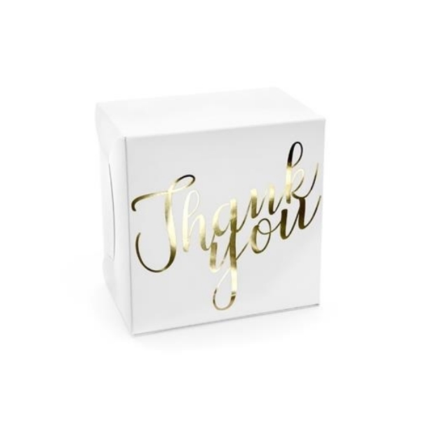 Dárkové krabičky bílé Thank You se zlatým nápisem 14 × 8,5 × 14 cm, 10 ksSkladem 57209 Kč