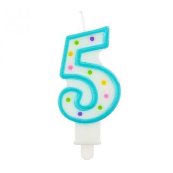 Dortová svíčka číslo 5 s puntíky 7, 5 cm