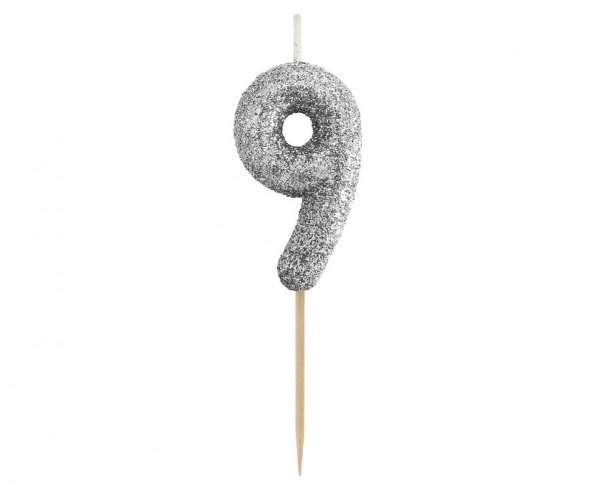 Dortová svíčka číslo 9 - třpytivá černo stříbrná, 11 x 3,5 cmSkladem 4831 Kč