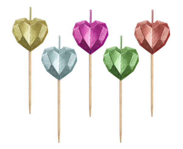 Dortové svíčky - Diamantová srdíčka - chrome 7 cm - 5 ksSkladem 2054 Kč