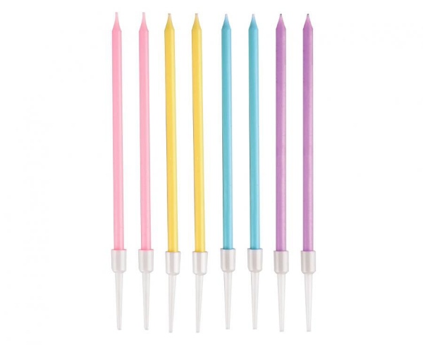 Dortové svíčky s držátky - Macaron mix 14 cm - 8 ks