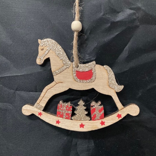 Dřevěná ozdoba Houpací koník Vánoční - 11 x 8,5 cm