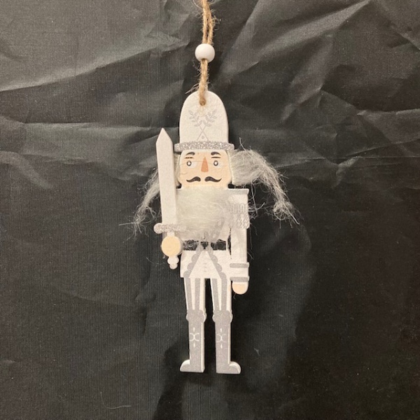 Dřevěná ozdoba Louskáček stříbrný - 13 cm