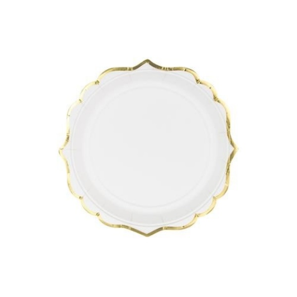 Luxusní papírové talířky v bílé barvě se zlatým okrajem, budou nepostradatelným doplňkem každé oslavy narozenin, tématické party nebo zahradní oslavy s grilováním. Jsou také velmi praktické, talíře po použití jednoduše ekologicky zlikvidujete, bez nutnosti mytí.