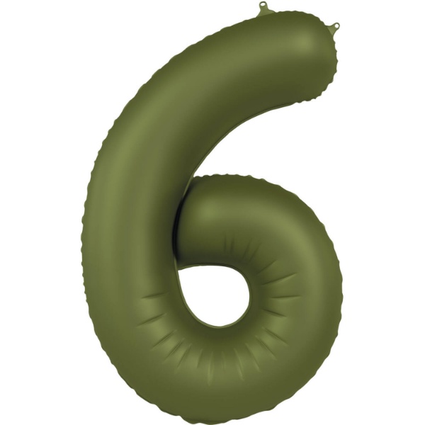 Foliová číslice saténová v olivově zelené barvě. Balonek je vhodný na oslavy narozenin, kde může vyobrazovat věk oslavence nebo výročí firmy a další. Balonek lze nafouknout klasicky vzduchem ale i heliem.
