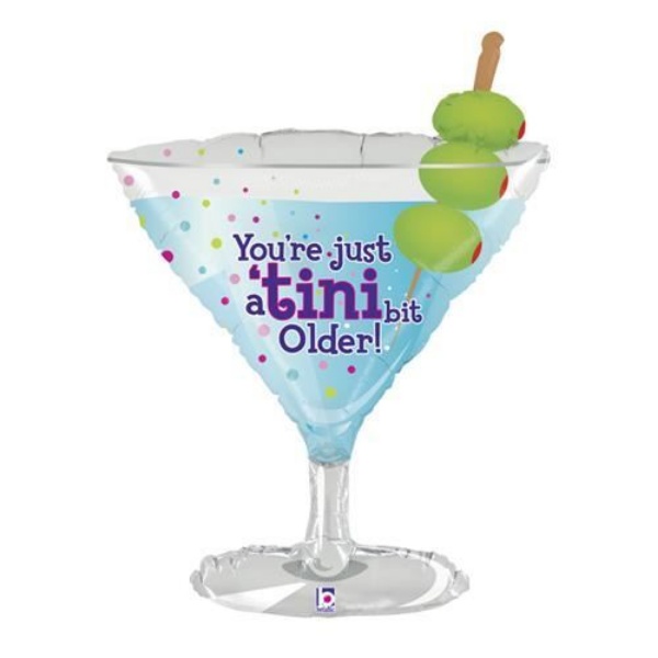 Foliový balonek ve tvaru sklenky martini s nápisem "Jsi jen o trošku starší", který bude krásnou dekorací při oslavě narozenin.