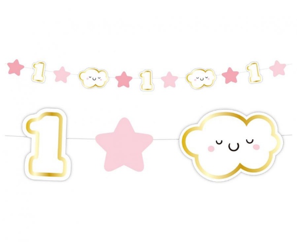 Girlanda 1. narozeniny holka - obláčky a hvězdičky 120cm