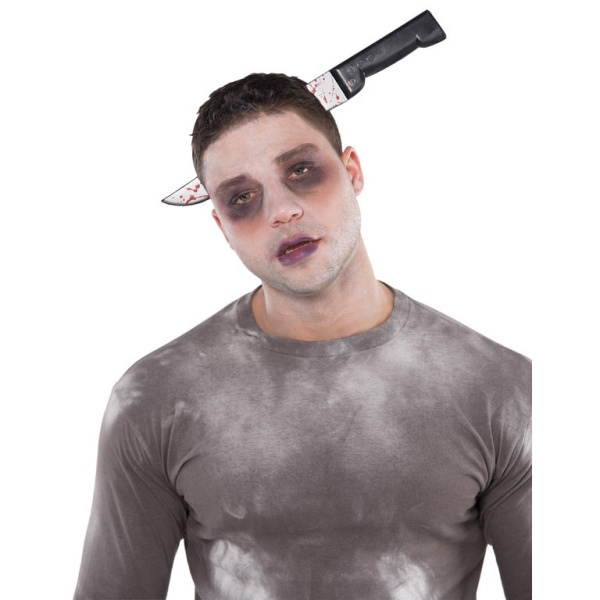 Umělý nůž nasazený na čelence! Ideální doplněk k Halloweenskému kostýmu, využijete ho ale i na karneval nebo na tematickou party.