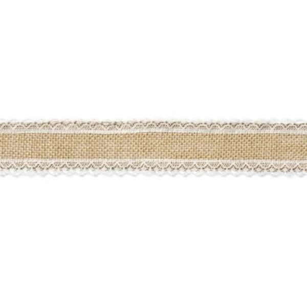 Jutová stuha s krajkovým lemováním 5 x 500 cm