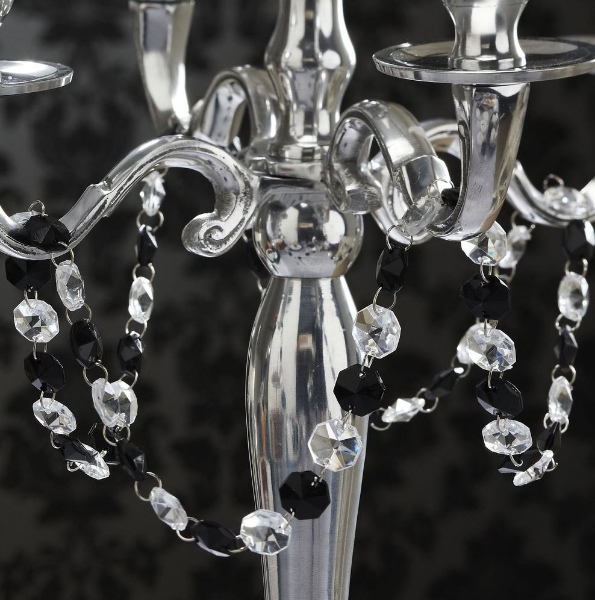 Elegantní řetízek s černými a čirými křišťálovými kameny. Použití například do svícnů nebo jako ozdobná dekorace na slavnostní stůl na vánoce ale i na svatbu. Délka jednoho řetězu je 1 m. Tímto jednoduchým party doplňkem, dotáhnete každou oslavu k dokonalosti.