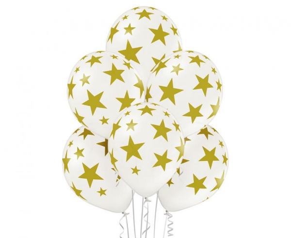 Kulatý balonek o průměru 30 cm s potiskem hvězd. Vhodný do trsu balonků například na narozeninovou oslavu nebo party.