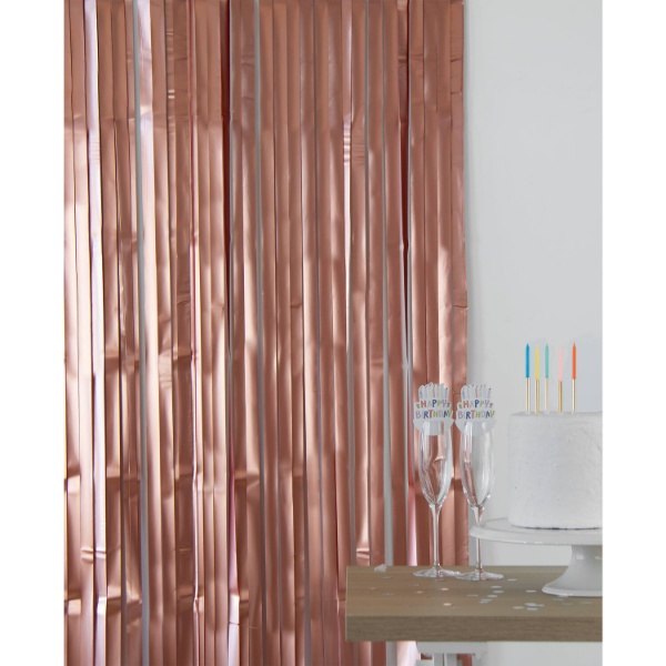 Rose gold párty závěs v matném odstínu pro zavěšení do dveří, balónkových girland a foto koutků s pruhem oboustranné lepící pásky, která je již připravena přímo na závěsu. Tento párty závěs určitě využijete při oslavách Silvestra, maturitním plese, tematické party ve stylu rozlučka se svobodou, nebo výzdobě fotokoutku. Tímto jednoduchým party doplňkem, dotáhnete každou oslavu k dokonalosti.