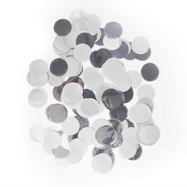 Metalické stříbrné a bílé konfety na stůl a dekoraci, které jsou vyrobeny z lesklého materiálu a vhodné nejen k výzdobě párty stolu, ale také pro výrobu plněných balónků.