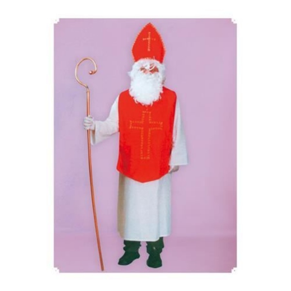 Tento divadelní kostým Mikuláše v červeném provedení se zlatým křížem je ideální pro tradiční mikulášské nadílky, školní programy i divadelní představení. Kostým tvoří dlouhá bílá tunika, červený ornát zdobený zlatým křížem a červená mitra s křížem. Materiál z počesaného polyesteru (BA-PES) zajišťuje odolnost, pohodlí a příjemný vzhled. Velikost pánská 52–56 padne většině dospělých. Tento základní model je cenově dostupnou volbou, přesto působí reprezentativně a tradičně.
