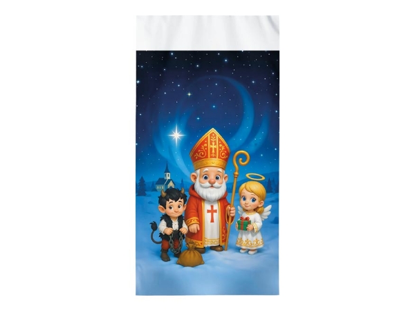 Technické parametry:Motiv: Mikuláš, anděl, čertMateriál: PP (polypropylen)Rozměry: 20 × 39 × 6 cmBarva: vícebarevný potiskBalení: 1 ks