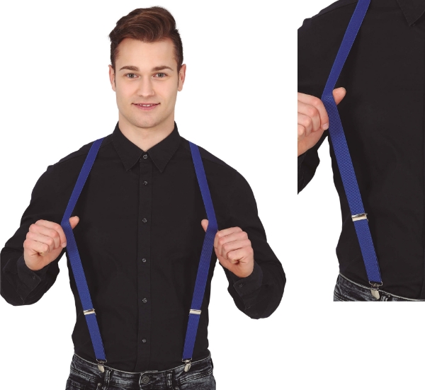 Modré kšandy (šle) vhodné jako univerzální doplněk nejen ke kostýmu na tematickou párty, letní oslavu nebo kostýmu tanečníka. Skvěle se hodí i na běžné nošení, nebo jako doplněk pro číšníky a barmany. Stačí doplnit stylovou košilí a je hotovo.