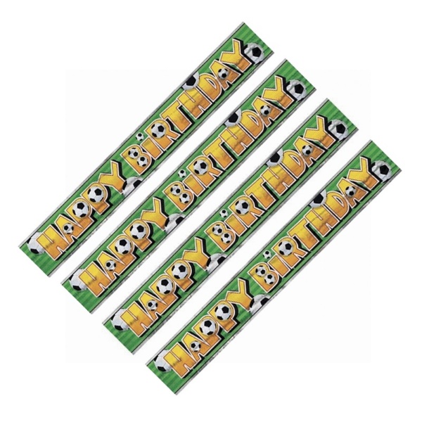 Plastový banner s fotbalovým potiskem a nápisem Happy Birthday je ideální dekorací pro narozeninovou oslavu malého fotbalisty. Díky celkové délce 365 cm snadno ozdobí větší část místnosti a přitom působí výrazně a slavnostně. Vyrobený je z tenké plastové fólie, takže je lehký a snadno se připevní na zeď, okno nebo dveře pomocí lepící pásky či lepítek. Skvěle doplní další fotbalové dekorace a vytvoří jednotný vzhled celé oslavy.