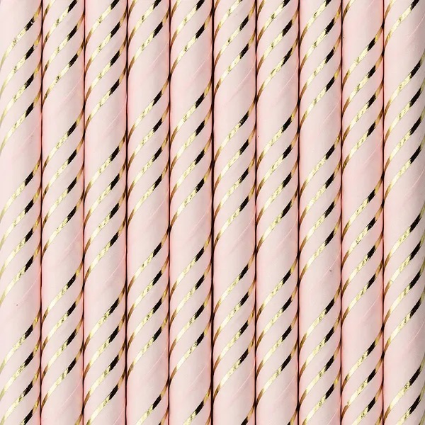Papírová brčka růžová - zlaté pruhy 10 ks