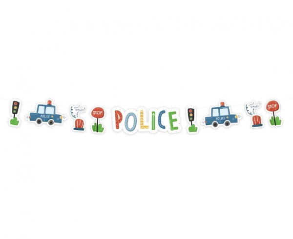 Party girlanda v policejním motivu. K doladění dekorace a výzdoby na narozeninovou oslavu nebo tematickou party.