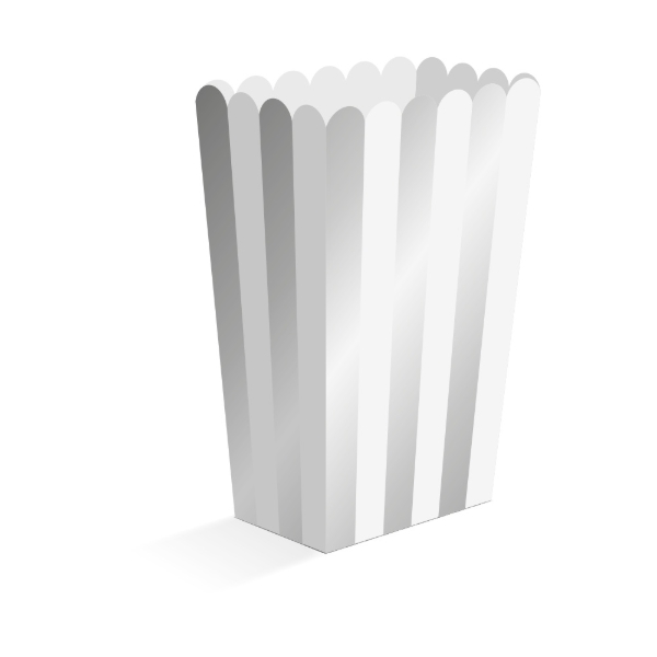 Papírové krabičky na popcorn pruhované stříbrné 6,3 x 4,4 x 13,5 cm – 8 ks