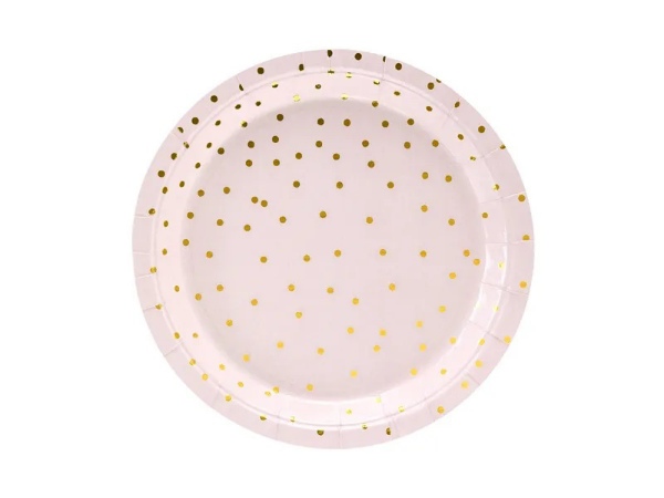 Papírové talíře růžové se zlatými puntíky 18 cm - 6 ks