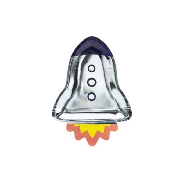 Talíře jsou papírové a jsou perfektní volbou na Vesmírnou tématickou party. Talíře jsou ve tvaru rakety.