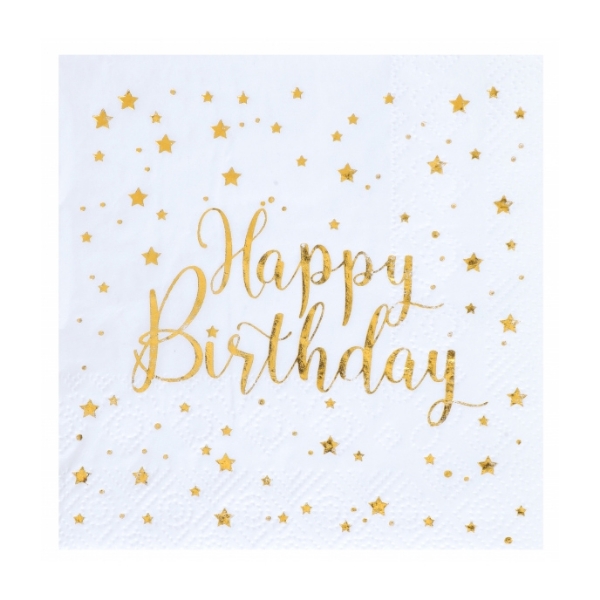 Papírové ubrousky Happy Birthday bílozlaté – 20 ks