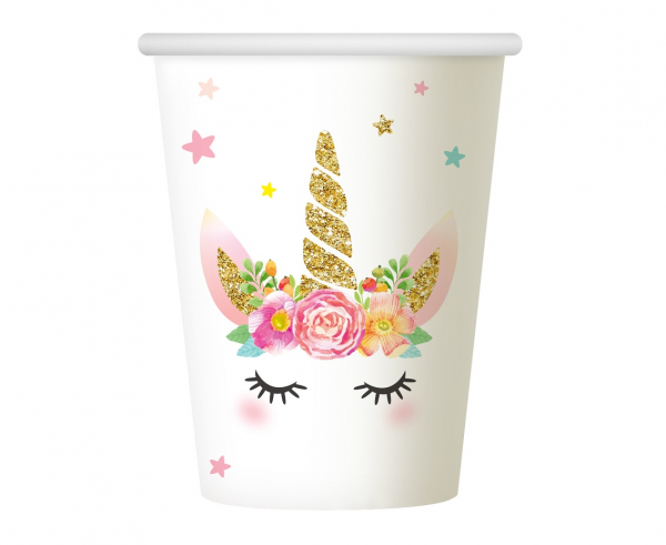 Party kelímky Floral Jednorožec se skvěle hodí na tématikou party, doporučujeme zakoupit spolu talířky, ubrousky a vším co krásně doladí celou party.