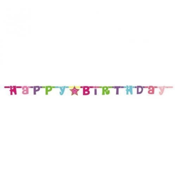 Dodejte oslavě tu správnou atmosféru s tímto barevným narozeninovým nápisem Happy Birthday ve veselých dívčích odstínech – růžové, fialové, zelené a pastelové. Skvěle se hodí na holčičí oslavy narozenin, ať už slavíte 1. narozeniny nebo větší party pro školáky.
