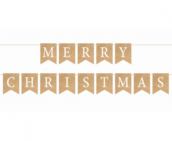 Papírová vlaječková girlanda s nápisem Merry Christmas v jutovém motivu. Vhodná k vánoční dekoraci večírků a jiných akcí.