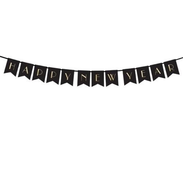 Tento party banner s nápisem Happy New Year je skvělým doplňkem pro vaši oslavu příchodu nového roku. Černé vlaječky se zlatým nápisem působí luxusně a slavnostně, díky čemuž perfektně ladí s černo-zlatou výzdobou. Banner je dlouhý 170 cm, což z něj dělá ideální dekoraci nad stůl, ke zdi nebo do fotokoutku. Díky pevnějšímu papíru se snadno zavěšuje a vydrží i opakované použití. Pokud chcete svou oslavu doladit do posledního detailu, tento stylový nápis je jasná volba.