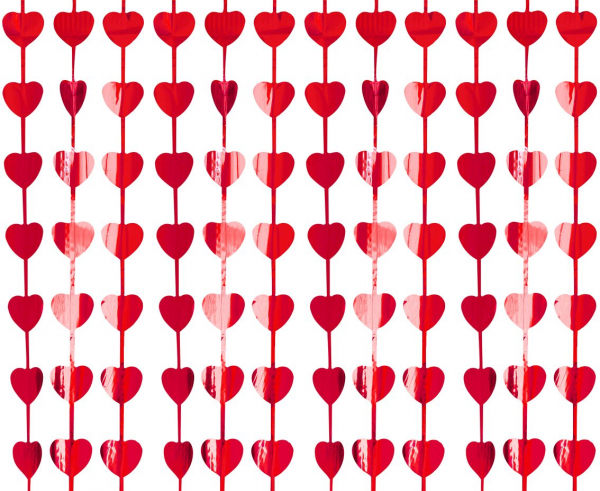 Party závěs metalický červený - srdíčka 100 x 200 cm