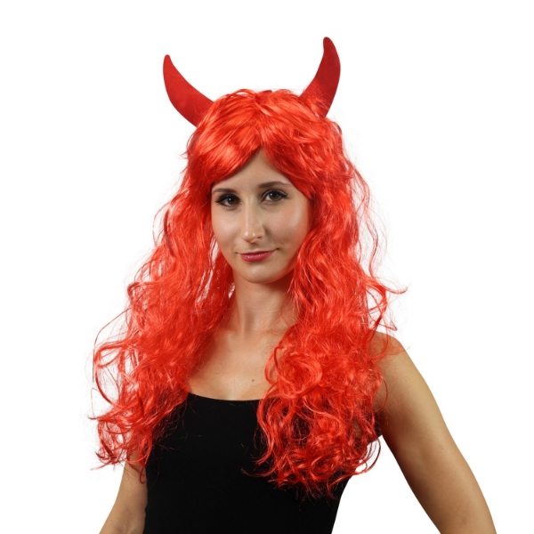 Paruka čertice s dlouhými kudrnatými červenými vlasy a rohy je nepostradatelným doplňkem ke kostýmu ďáblice nebo čerta. Díky výrazné barvě a veselému objemu skvěle doplní mikulášské, karnevalové i halloweenské převleky. Paruka je vyrobena z lehkého syntetického vlákna, které se pohodlně nosí a snadno přizpůsobí tvaru hlavy. Vhodná pro dospělé i starší děti, ideální pro opakované použití.