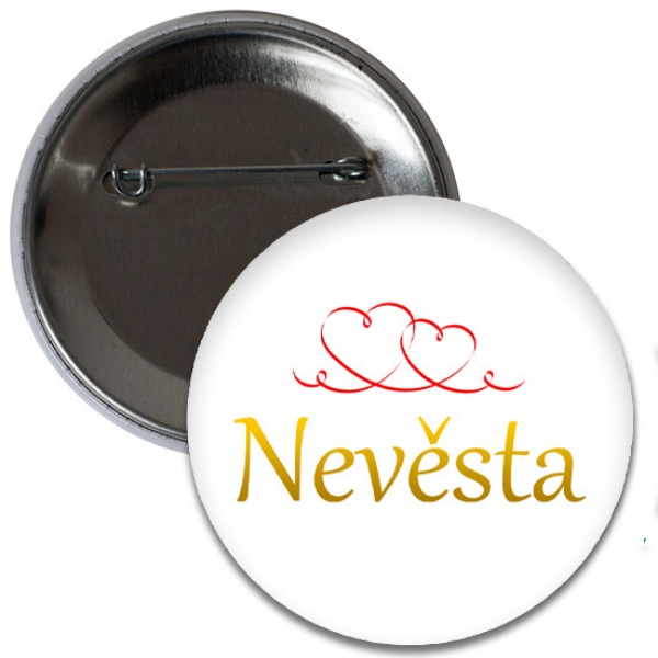Placka Nevěsta - srdíčka 6 cmSkladem 1135 Kč