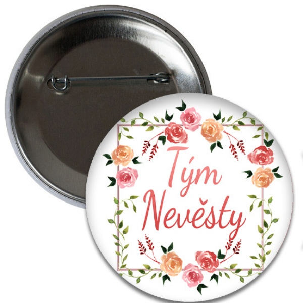 Placka Tým nevěsty - květinová 6 cmSkladem 135 Kč