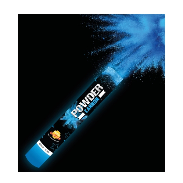 Práškové dělo o délce 30 cm naplněné 30 g modrého prášku je výrazný party efekt, který během okamžiku promění běžnou oslavu ve vizuální show. Jednoduchým otočením spodní části vznikne hustý oblak barvy, který skvěle vynikne na fotografiích i videu.