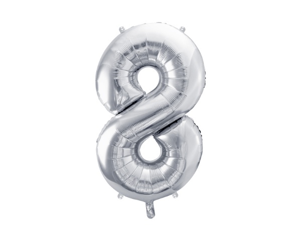 Foliová číslice ve stříbrné barvě. Balonek je vhodný na oslavy narozenin, kde může vyobrazovat věk oslavence nebo výročí firmy a další. Balonek lze nafouknout klasicky vzduchem ale i heliem.