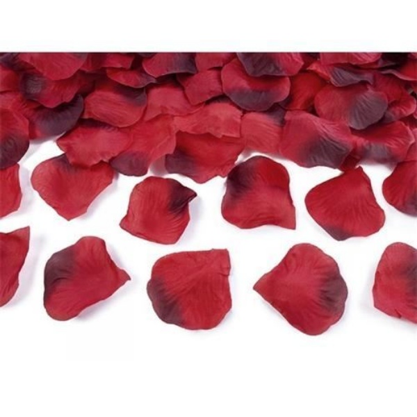 Okvětní lístky růží červené barvy z textilu. Balení obsahuje přibližně 500 kusů lístků. Budou skvělé pro dekoraci svatebních i svátečních příležitostí. Vhodné na stoly i jako náplň do košíčků pro družičky.