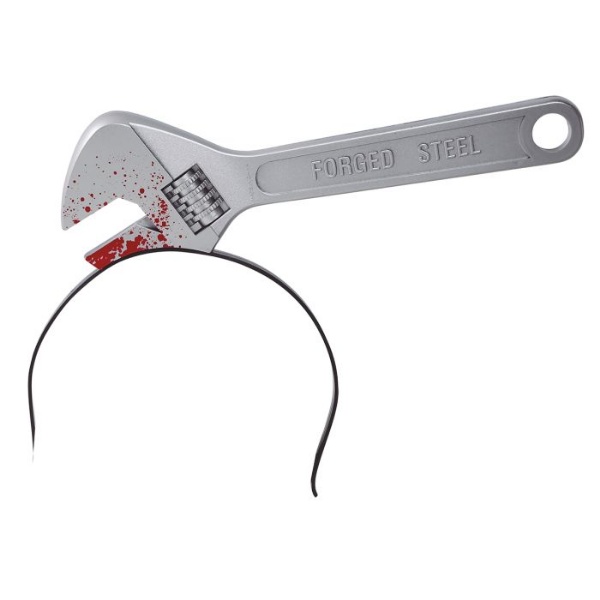 Čelenka - krvavý klíč v hlavě. Děsivá čelenka do vlasů v motivu zapíchnutého klíče v hlavě, hodí se jako doplněk ke kostýmu na Halloweenskou party nebo jen jako doplnění outfitu na party.