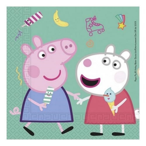 Papírové ubrousky s motivem Prasátko Peppa, vhodné na tématickou party do kombinace spolu s kelímeky, talířky, atd.