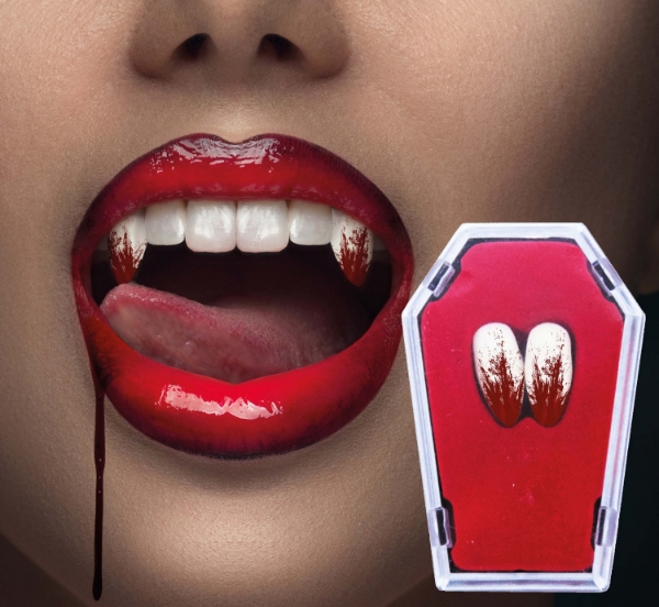Proměň se během chvíle v děsivého upíra! Tyto krvavé špičáky s bílým základem a realistickým červeným nátěrem skvěle doplní každý hororový kostým. Pomocí přiloženého termoplastu je snadno upevníš na své zuby – bez potřeby lepidla. Ideální doplněk pro Halloween, strašidelnou párty nebo tematické focení. Vše je baleno ve stylové krabičce ve tvaru rakve.