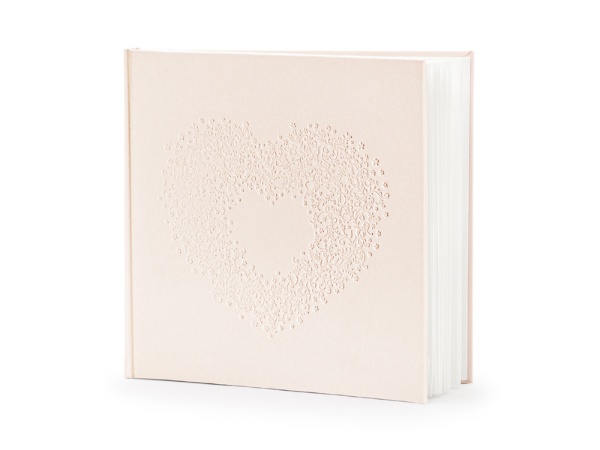 Svatební kniha v růžové barvě a se srdíčkem, která se hodí na jakoukoliv svatbu. Skvělý způsob, jak dostat od svatebních hostí, psanou vzpomínku. Kniha hostů je vyrobena z papíru a tvoří tak decentní a krásný dekorační doplněk na vaší svatbě.