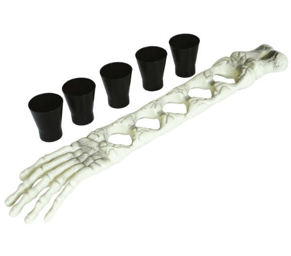 Ruka kostlivce 50 cm s pěti panákovými skleničkami