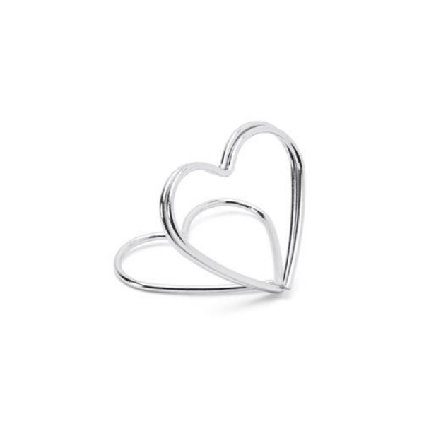 Držák na jmenovky ve tvaru srdce ve stříbrné barvě. Vhodné na jakoukoliv svatbu, 10 ks. Ideální na svatbu, kde velmi zjednoduší organizaci. Vhodné pro jakoukoliv svatbu nebo křtiny. Krásný způsob, jak začlenit tento oblíbený motiv do vaší svatební výzdoby.