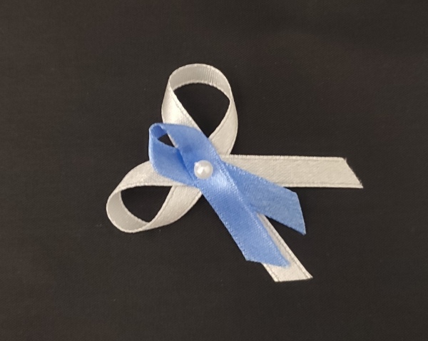 Svatební mašlička k myrtě - modrá a bílá