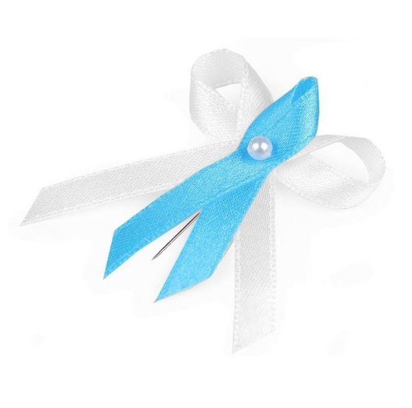 Rozměry: cca 6 x 4 cmMateriál: Saténová stuha, plastová perlička, kovový špendlíkBarva: Bílá a tyrkysováBalení: 1 ksUchycení: Špendlík součástí